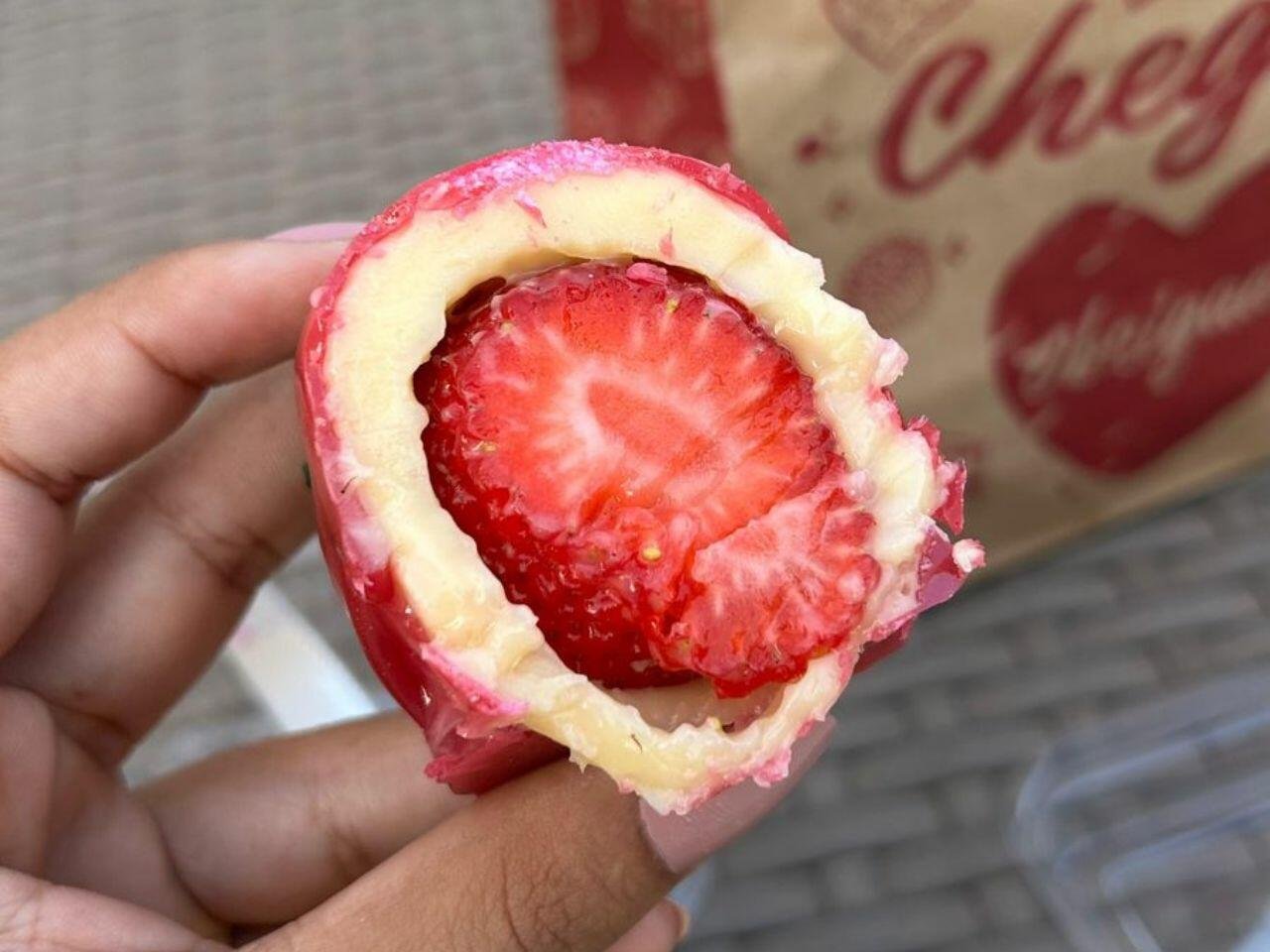 Morango do amor delicioso, super crocante por fora e cremoso por dentro. Parabéns à equipe!